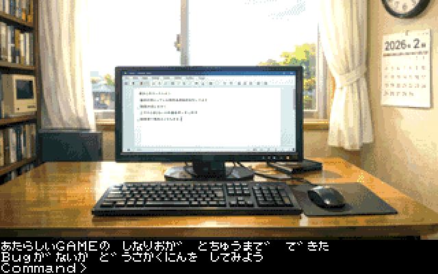 このゲームは、FM77AV20/40シリーズの実機またはXM7で遊ぶことができる昔懐かしい画像付きテキスト入力型のアドベンチャーゲームです